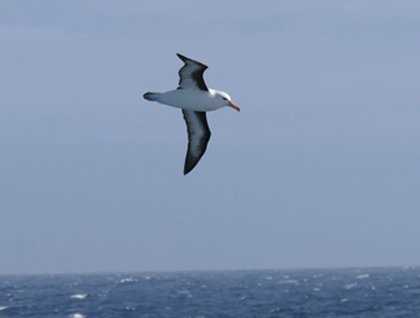 As always when travelling these waters, our vessel was swarmed by seabirds. Black browed albatrosses and pintado petrels soared effortlessly next to our windows and close off our bow. Humpback whales flanked us, spouting in the distance, and we even saw the large black dorsal fin of a male killer whale in parallel with our track.