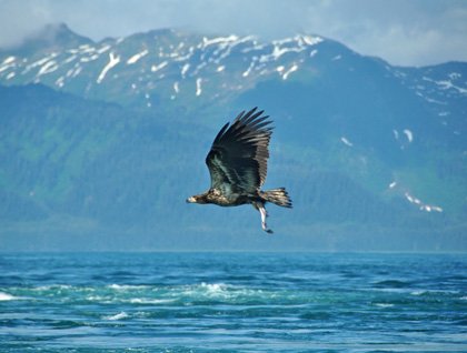 After breakfast we loaded onto the inflatable boats for a cruise around the Inian Islands. These islands stand at the mouth of Cross Sound, the northernmost entrance to the Inside Passage. The extreme tides so characteristic of Southeast Alaska funnel through this narrow entrance, creating strong currents. Whirlpools, standing waves, and immense upwelling churn the waters, stirring the water column. Bottom-dwelling fish are sucked up to the surface while others, unable to fight the tremendous current, are swept along with the tide. This attracts hungry wildlife, both marine and aerial. Dozens of bald eagles fished the surface while Steller’s sea lions frolicked and foraged in the depths. Humpback whales plied the calmer passages, feeding as they went. Sea otters kept a wary eye on us as they munched on basket stars and groomed at the surface.