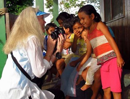 For the afternoon we traded the muddied river for an excursion to black water. Flood the forest and the waters steep the tannins from the vegetation and the waters flow a deep, tea-stained brown. As we maneuvered upriver, both gray and pink river dolphins were found. They became our escorts as we continued upstream. The heat of the day was dissipating, the forest quieted a bit and that presented us with the special treat of hearing the muffled exhalations of the dolphins within the flooded forest. Our skiff driver skillfully maneuvered us into an oxbow lake and in the depths of the forest we came upon hoatzins; a large, ridiculous Phyllis Diller-styled bird with spiky plumes sprouted from the top of its head and a patch of blue behind its red eye. The flock was settling in for the night and we bid them a farewell and headed back to our ship, just in time to see the last pink highlights of sunset and head into a light rain shower. Wet and officially inaugurated into the tropical rain forest we came home satisfied with our adventures.