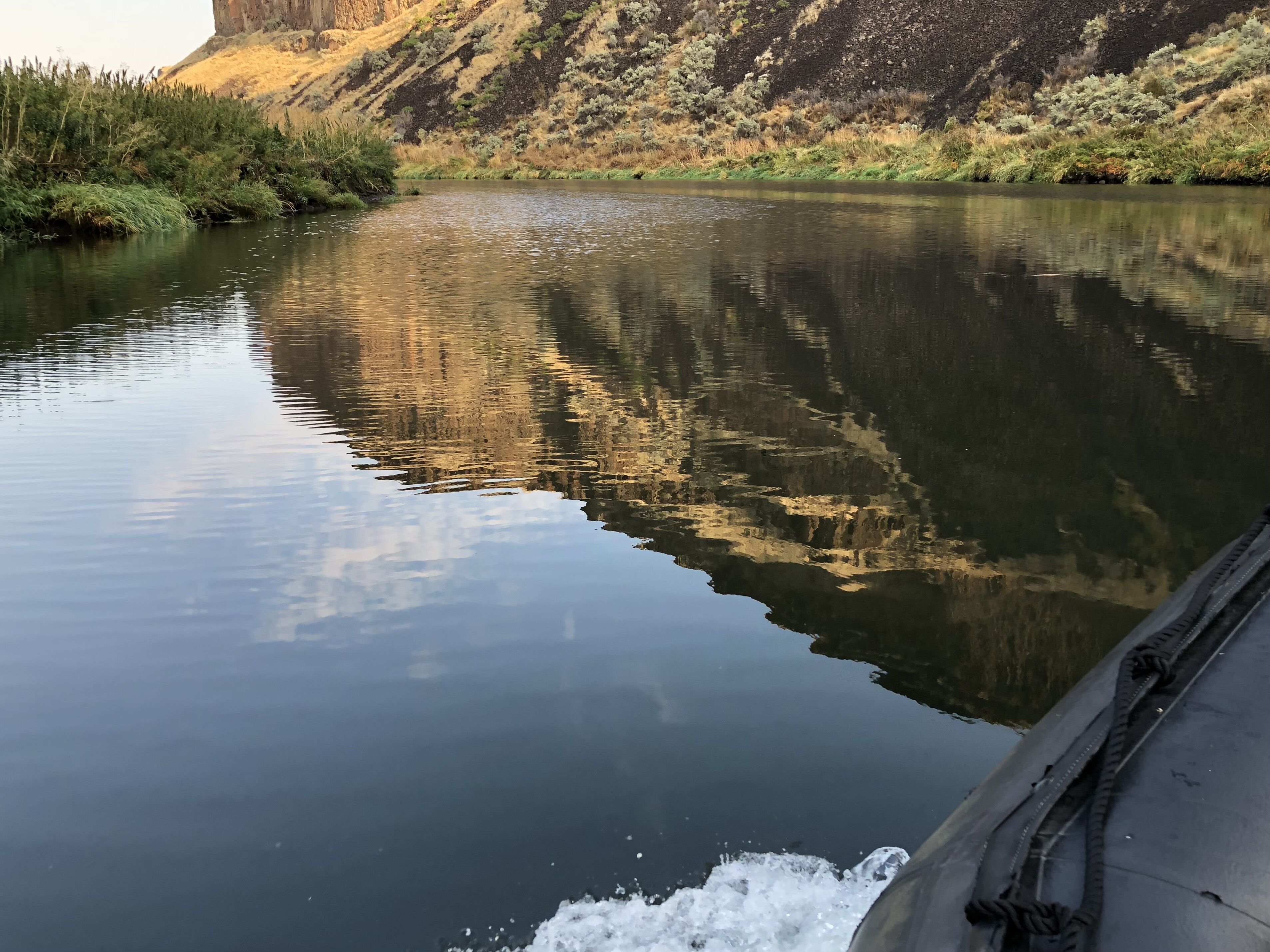 Our afternoon adventure was a Zodiac cruise up the Palouse. The calm, shallow waters were lined in places with cattails, rushes, and western white clematis. Among the plant life, we saw evidence of beavers and river otters. Golden eagles, cliff swallows, great blue herons, and rock doves soared above. It was easy to imagine the members of Lewis and Clark’s company hunting the area for dinner.
