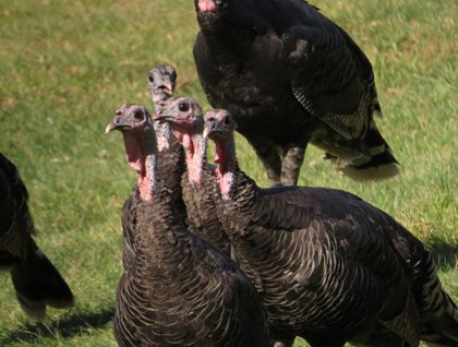 Our jaunt into the canyon on this fine autumn day also brought wildlife sightings of mule deer, rocky mountain bighorn sheep, and numerous turkeys. The sheep are not yet into their fall rut, so the groups we found were still segregated between ewes and mature breeding male rams. We had a great opportunity for viewing mule deer and turkeys at our lunch stop, the Garden Creek Ranch. The apple orchard and watered grounds create a habitat feast for these canyon dwellers.