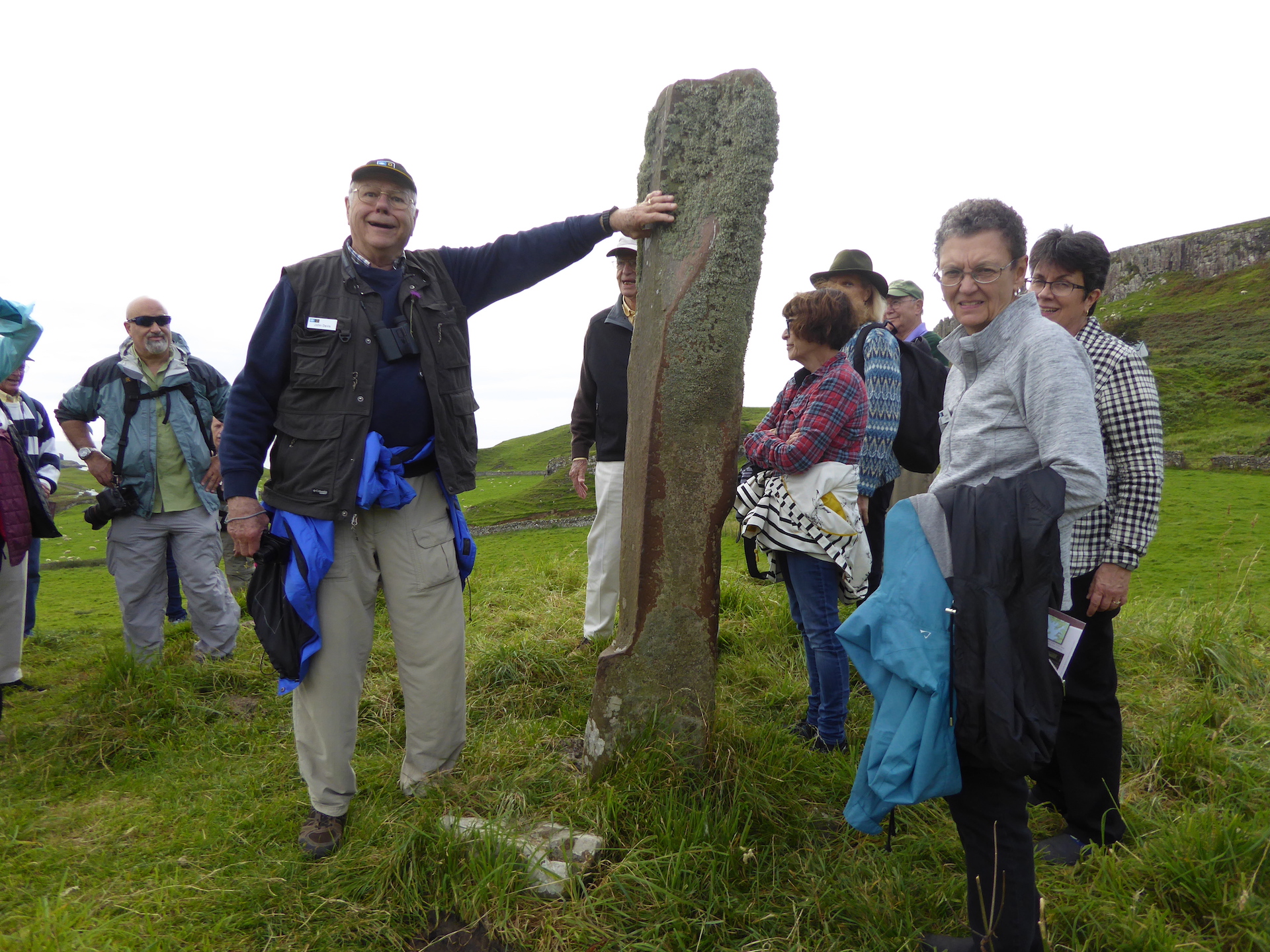 Konia offered a walk with information on life and wildlife on the island today and in the past. We discovered the history of Coroghon Castle, the three churches on the island, Canna house, and finished off at the Celtic cross at A’Chill with the pillory stone (see picture). This tranquil island is connected to the island of Sanday by a bridge and has a joint population of only 26.