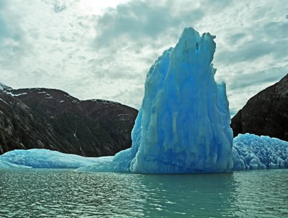 Morning found National Geographic Sea Lion cruising north up Stephens Passage. We turned into Holkham Bay at breakfast, entering Tracy Arm-Fords Terror Wilderness. A shallow rocky bar, the ancient terminal moraine of the glaciers, trapped giant icebergs in the bay. We watched as delicate frozen arches collapsed into the sea and marveled at the beautiful blue hue of the ice.