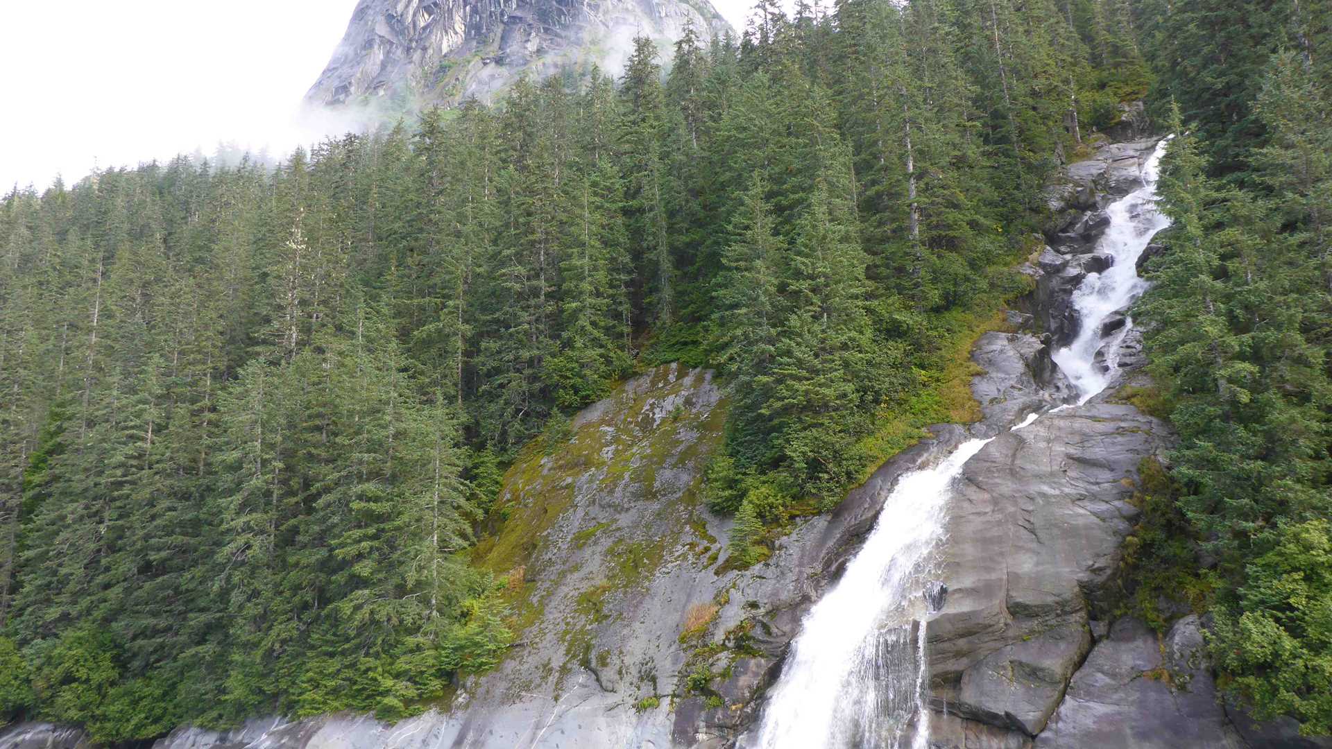 Next we rounded the corner into Tracy Arm, watching the topography grow steeper, narrower, and ever more dramatic.  We spied mountain goats on the cliffs a thousand feet above, suspended above the sheer drop, unfazed.  Some 30 miles deep into this narrow fjord, around the corner from South Sawyer Glacier, we finished lunch, bundled up in every layer we’d brought, and climbed aboard our zodiacs, bound for the glacial face.  We slalomed through the icebergs and small “growlers,” watching harbor seals at rest on the floating ice.  All of these bergs are evidence of a very active tidewater glacier – flowing quickly downhill from its “accumulation zone” in the Stikine Icefield, and calving lots of ice at its face.  In fact, the South Sawyer Glacier, as with over 95% of Alaska’s glaciers, is in rapid retreat.  Before long, we had booming evidence of the glacier’s movement, as large chunks of ice, some the height of 10-story buildings, began to calve off the glacial face.  It took a second for the “white thunder” sound to reach us; several minutes later, our zodiac was bobbing in the large wave generated as the ice splashed down.  It was a thrill to be in the presence of such power – the cracking of the glacier echoing off vertical granite walls carved by the glacier itself.  What an introduction to Southeast Alaska!