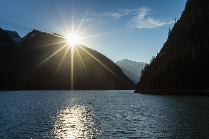 Today the National Geographic Sea Bird crossed the shallow bar into Tracy Arm Fjord just before sunrise. Tracy Arm is one of the most beautiful fjords in the world, and today was especially magical with blue skies, blue ice, and major calving events. The surprise of the morning was a pre-breakfast encounter with a small pod of killer whales in stealth mode, following the shadows along the shoreline.