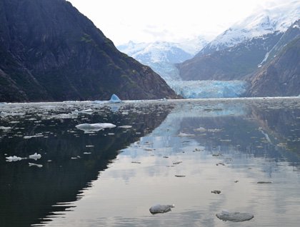 There are few things that grip the human soul more than natural beauty in the raw. Today aboard National Geographic Sea Lion we experienced this to the fullest. Waking amidst the high glacier carved fjords, the guests could not help but gaze skyward in attempts to see the tops of the mountains that surrounded them. The grand scale of what nature can accomplish is often set at a distance, but today we experienced it at our very doorstep. The South Sawyer Glacier was set before us in majesty, riddling the water with icebergs both miniscule and gargantuan. Navigating with delicate maneuvers, we made our way deeper in toward the glaciers amidst the calls of Arctic terns and sightings of harbor seals.