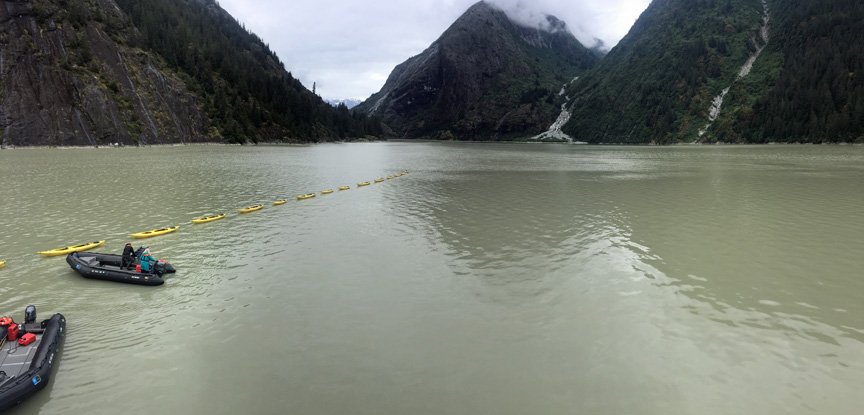 Our guests, like professionals, slid into the kayaks from the expedition landing crafts, a very different way to start an adventure in this majestic fjord, Endicott Arm.