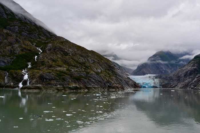 In Tracy Arm—the northern of two fjords ending in tidewater glaciers—the narrowness and steepness of the canyon creates an air of mystery rarely found in the modern world. With the clouds hiding the tops of the mountains from our view, Zodiacs zigged and zagged in between bergy bits and icebergs that had recently separated from the face of South Sawyer Glacier. Pausing to peek at some pupping harbor seal females, we gazed at the glacial giant in front of us. South Sawyer extends just over 20 miles east towards the Stikine Ice Field that feeds it, only half of which is on the United States’ side of the Canadian border. With calving pieces the size of apartment buildings raining down from above, the 300 feet of glacier below the surface becomes more destabilized, sending shooters of the deepest blue ice to the surface with almost no warning. Cocoa boat Vikings “reverse plundered” each Zodiac, offering hot beverages to warm fingers that had started to go numb from being exposed to the elements while taking hundreds of photos. Everywhere we looked there were amazing textures—in the icebergs and on the granitic cliffs surrounding us—nothing that could truly be captured any better than what could be found in our memory.