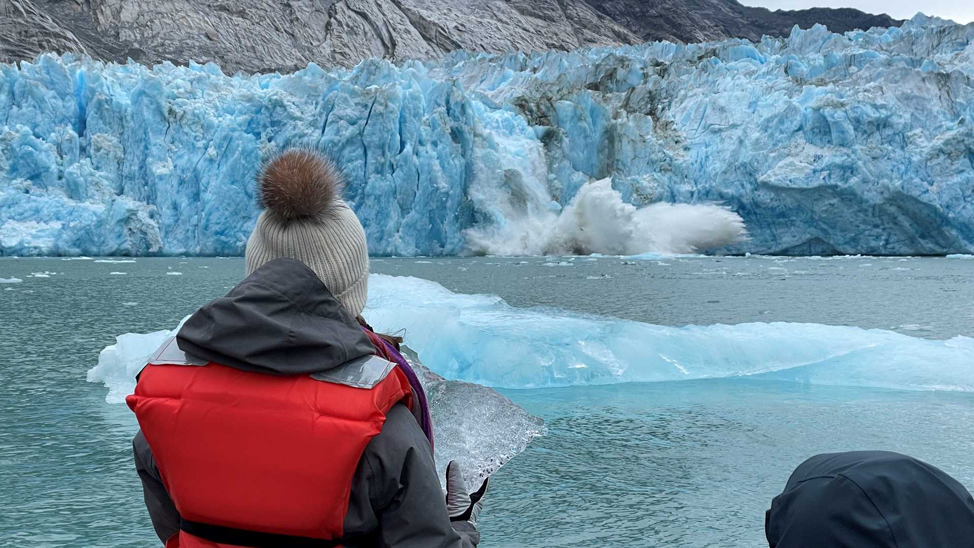 Today, guests explored the wild beauty of a 35-mile-long fjord that terminates in our final tidewater glacier of the expedition. Here, those that are brave enough to venture into the cold will get as close as is safe to the face of the glacier in Zodiacs, hoping for some calving or wildlife to show.