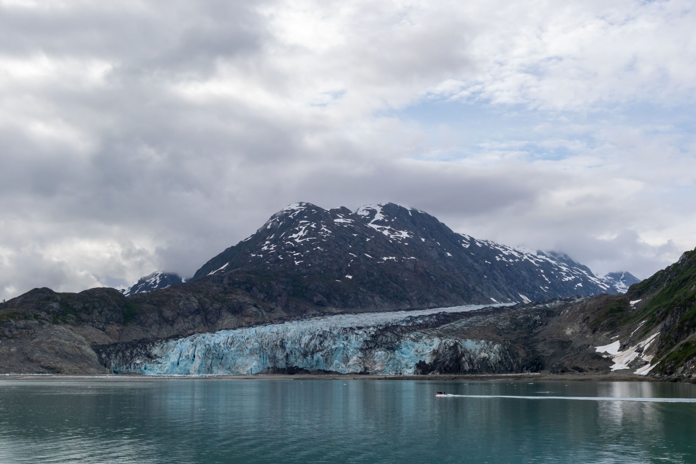Cruising throughout the night, we awoke to the sheer granite walls of Tracy Arm rising thousands of feet over our heads. The cloudy sky started beneath the peaks of the surrounding mountains in the fjord, and more clouds appeared whilst we approached Sawyer Island. We were lucky to have an open path as the ship maneuvered through the ice towards South Sawyer Glacier. All our guests were able to spend at least an hour at the gorgeous face of the glacier. We got as close as is legally possible. The sun was shining behind the glowing blue ice as we crossed back and forth. Pupping season fully underway, we were able to view mother harbor seals nursing their young on floating blocks of ice. We were lucky enough to sit in awe multiple times as massive calving events sent ice crashing into the water below, echoing through the fjord.