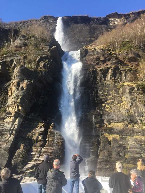 Next on the agenda was undersea specialist Paul North’s time to shine, as he presented the fascinating world of plankton and its global impacts in a lecture that was informative and entertaining- a hallmark of Mr. North’s communicative style. After lunch, we explored Nordfjord to soak up this proper balmy afternoon! Some watched snow cascading down the surrounding mountains via kayak, while others discovered various parts of the simply gorgeous area via Zodiac. A few of us made it to shore for a bit before pulling anchor and heading on our merry way for a secret treat just before Recap! Captain Martin outdid himself as he nosed the bow of National Geographic Orion right up to the water’s edge - the waterfall’s edge that is! During this navigational dexterity, we took turns getting soaked for a perfect picture moment as the water rushed down the steep cliff inches away right onto our ship. A rainbow appeared serendipitously in the waterfall’s mist and it was certainly an exhilarating, particularly wet experience for the brave few that jumped up to the nose of the bow. Recap, cocktails, and seemingly infinite sun concluded yet another adventure-filled day onboard.