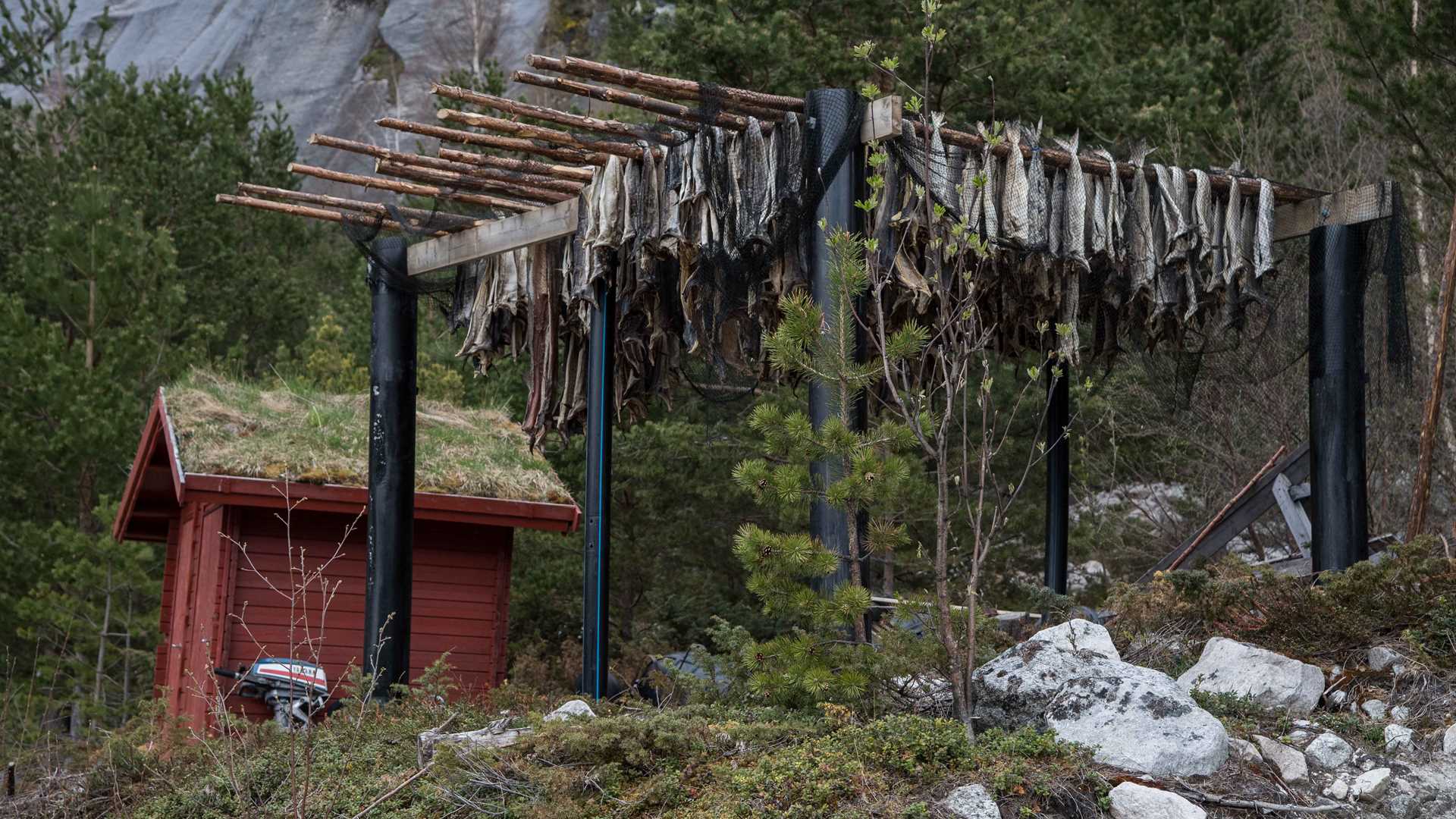 Ahead of us was a small Sami village. The village is still in use, mainly as a summer area for the Sami people. When we arrived the town was empty but there was evidence of life with racks of fish, mostly cod but also some sturgeon, hanging out to dry in the open air. The fishing season is over, but the Sami dry the fish for many weeks before it is ready for use.