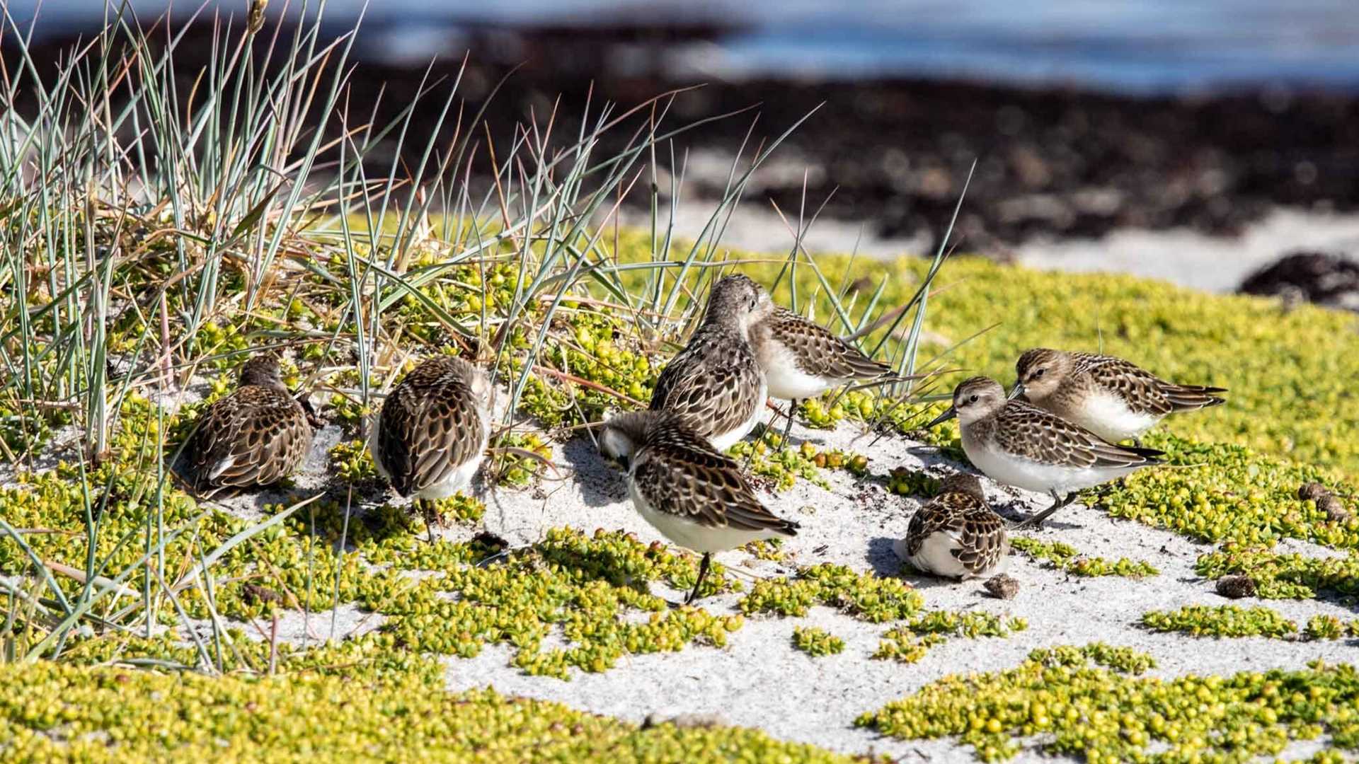 Today was spent exploring King William Island from National Geographic Endurance. An expedition morning at Booth Point didn’t disappoint. This is the site where the remains of a body from the Franklin Expedition were found in 1981. After nearly 36 hours on the ship, everyone was keen to stretch their legs and discover the area’s natural history. Twenty species of birds, an arctic fox, and some distant reindeer kept us entertained. We observed wading species in their feeding flocks, with seven species of sandpipers feeding together on a sandy spit.