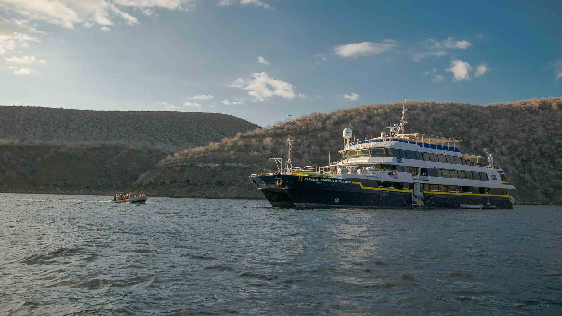 Back onboard, we had lunch and enjoyed a presentation about iPhone photography. In the afternoon, we snorkeled in Tagus Cove. The water visibility was wonderful, and we spotted several sea turtles, flightless cormorant fishing and penguins playing acrobatics in the water. We even spotted a Galapagos bullhead shark, a rare and fascinating species of shark which can only be found on few areas around the Galapagos Marine Reserve. To end up our day, some of our guests took a hike to enjoy an incredible view of the several of Isabela’s volcanoes, while others took the Zodiac ride option where we saw blue footed boobies, pelicans, flightless cormorants, penguins and cute sea lion pups.  The colors during the sunset were impressive, just like our whole day.