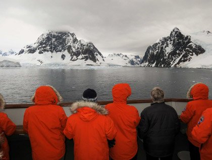 Back onboard out of the wind we set a course to explore further south.  As our next destination was relatively close, the Captain and Expedition Leader decided to sail as far south as we could before having to turn back, reaching 65º 47'S.  Being that it's Valentine’s Day a special evening performance by our very own “Explorer Spice Boys” would take place after dinner.  A fitting way to bring an end to another grand day of exploring in Antarctica.