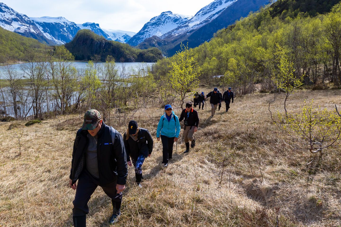In the afternoon, we moved to Lomsdal National Park. We went out for some great Zodiac rides along the sheer cliffs shaped in the past by glaciers. At the very end of the fjord, we moved to land. Hikers stretched their legs among the birch trees and conifers.