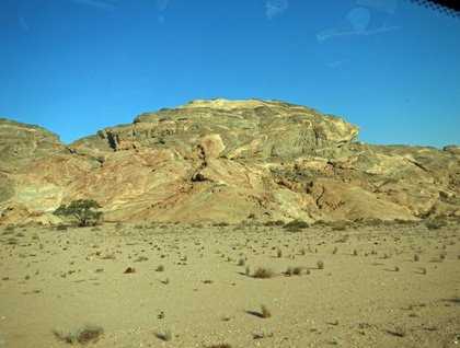 Today was our first of two days in Walvis Bay, Namibia. The bay itself is an excellent harbor sheltered from the prevailing southwest wind which drives the highly productive Benguela Current offshore. We are at Latitude 23º south, and under the South Atlantic subtropical high pressure area where the falling dry air produces the famous Namib Desert. We have two days to explore this wonderful desert where nearly all the water is carried ashore in the fog which comes in at night from the cold offshore waters. Even though the desert is covered with extensive and very beautiful sand dunes with very little vegetation, life thrives here. We were able to find a number of the small animals which spend much of the day either buried under the sand, like the sidewinder snake, or the Namibian chameleon which hides in the little vegetation available to avoid the heat of the day.