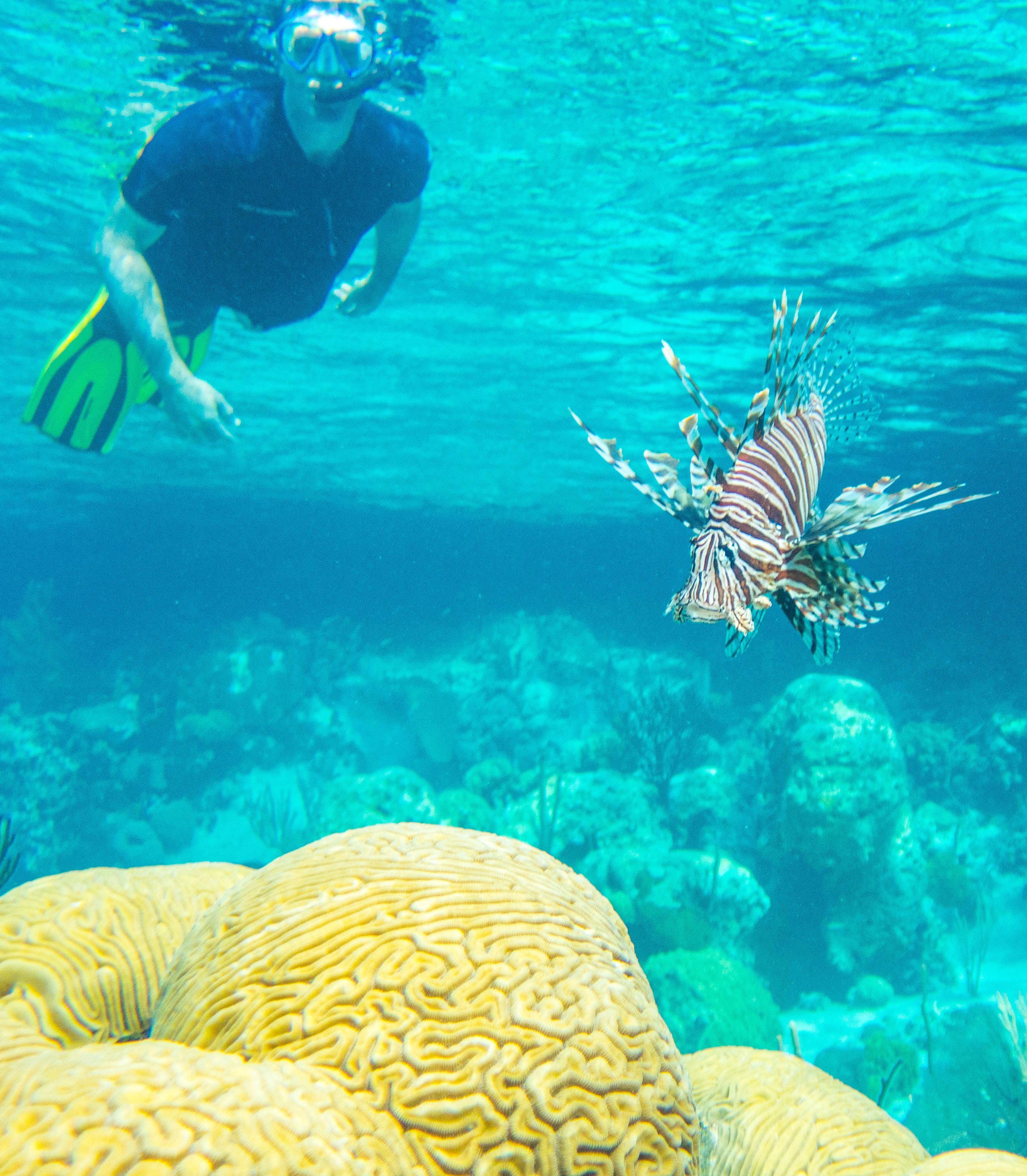 A squall passed by right before lunchtime, giving us a taste of the tropics. We waited it out before heading out for a round of afternoon activities. We enjoyed a presentation by National Geographic certified photography instructor Kim Nesbit. Though the wind had stiffened, our protected bay gave us the chance to kayak and paddleboard, getting a taste of the activities National Geographic Sea Lion can offer. The water in the Bahamas, with its color and life, are some of the clearest in the world. The beauty is impossible to ignore, as we are happily engulfed in it.