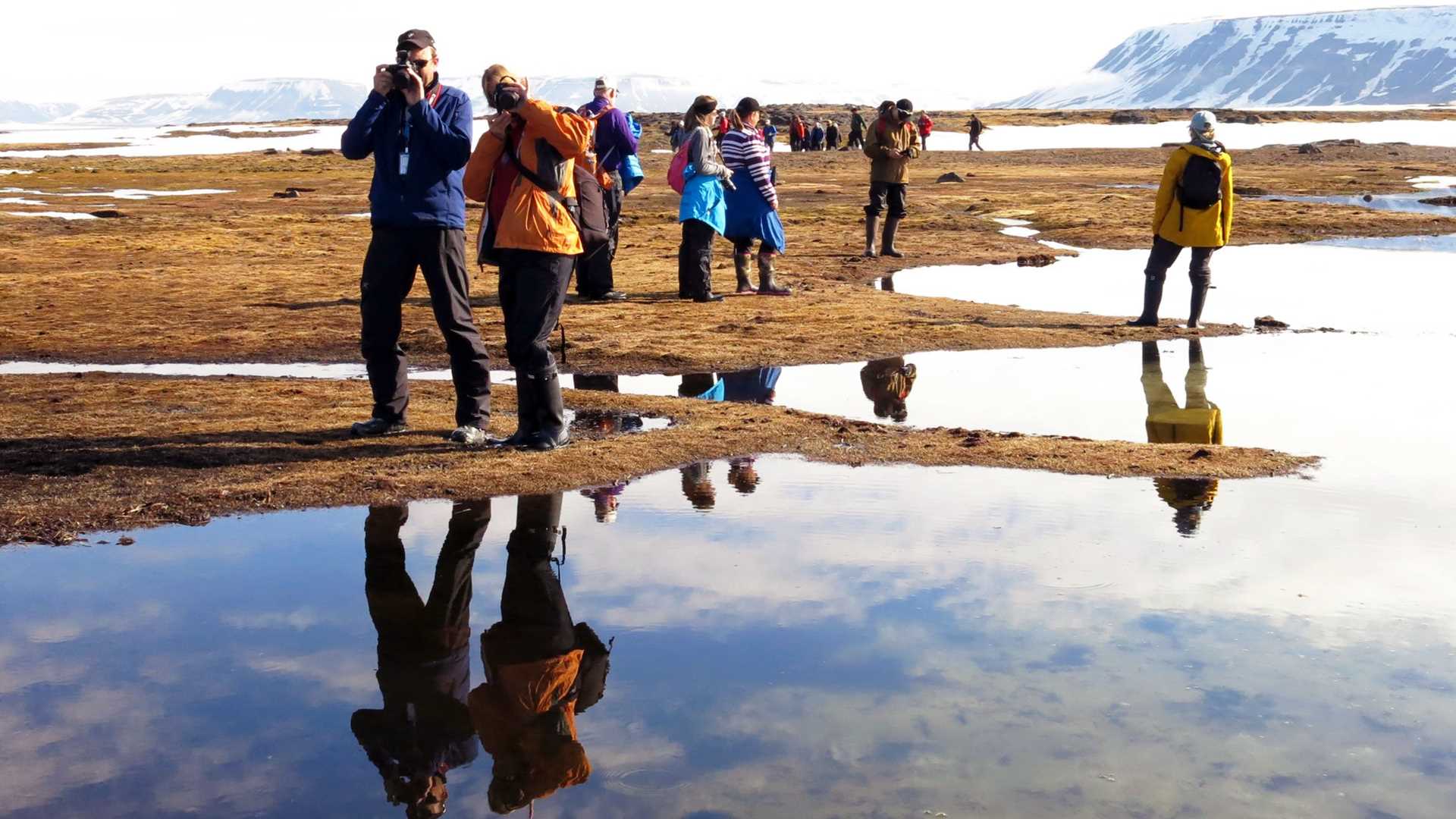 During the hike we enjoyed the majestic views over Storfjorden, the great body of water that separates Edgeøya from the main island of Spitsbergen, and of course we enjoyed the weather. On the tundra plains we spotted geese, terns, red phalaropes and many other birds. Those who went on the longer hike also saw reindeers.