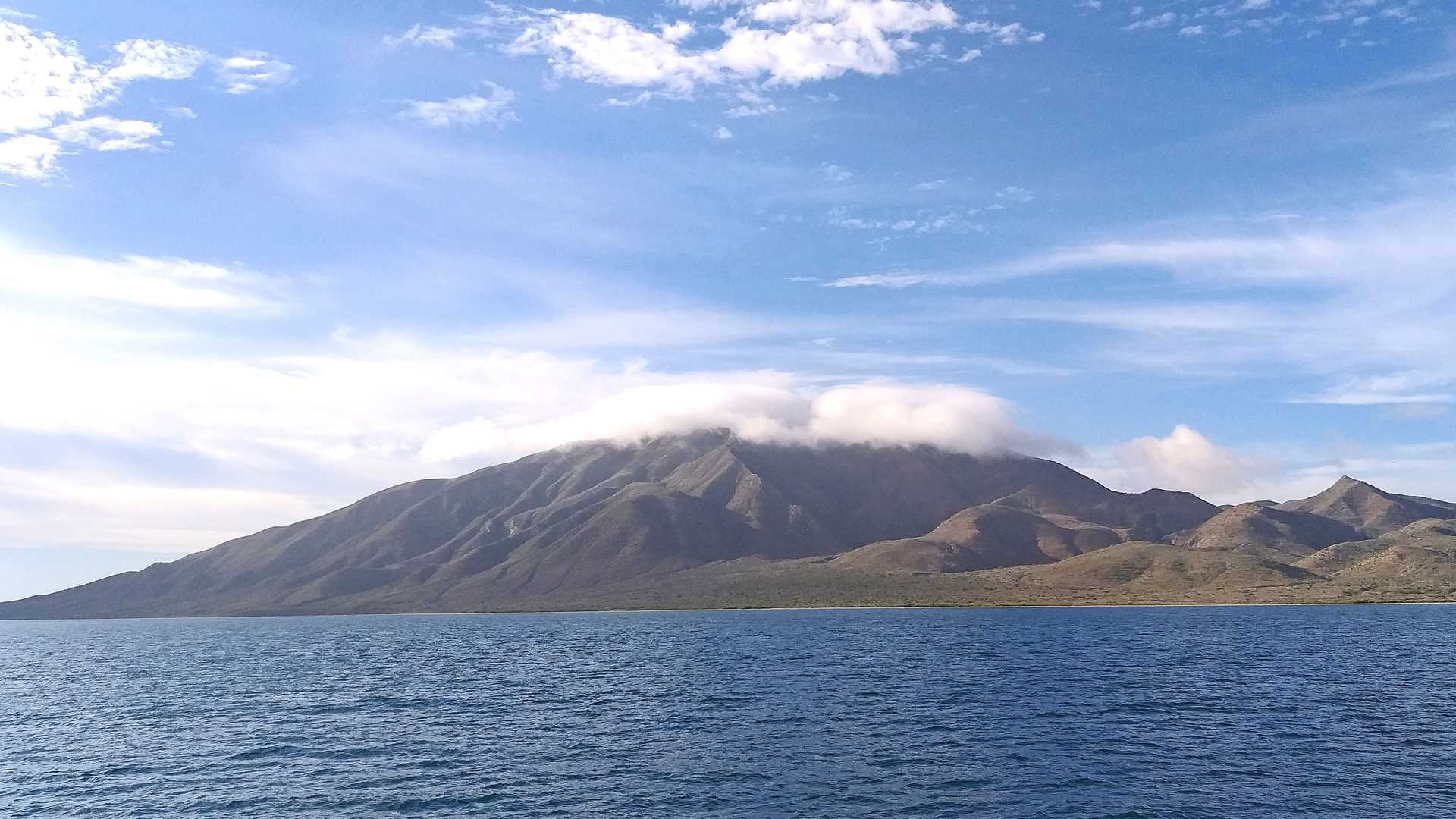 National Geographic Venture anchored in Almejas Bay, the southern portion of the Magdalena Bay complex. We enjoyed a colorful sunrise and views of the beautiful, rugged and exotic terrains of Santa Margarita. To the east, we observed the vast plains of the Santo Domingo Valley on the Baja California Peninsula. Different species of seabirds flew over the quiet waters of the bay, so guests had the opportunity to identify and photograph them. After safety briefings, all guests and staff boarded pangas for the first whale-watching outing of our voyage. Pangas are fiber-glass outboard boats that local fishermen use to fish throughout the year and for whale-watching during the winter. Once aboard the pangas, we moved down toward the southern entrance to the bay. Gray whales use this same entrance.