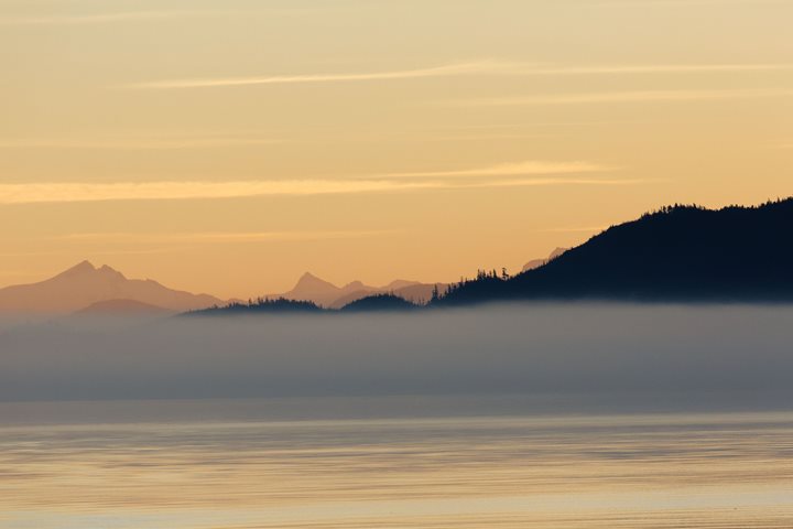 Our trip towards Wrangell in the early morning was mystical. Harbor porpoises popped up here and there. As we approached Wrangell, low lying fog shrouded the land like a well-worn and threadbare blanket, with trees and mountain tops emerging from the blanket’s holes as sticks and islands in the sky, respectively. Gradually, the town of Wrangell revealed itself, and we dropped anchor to begin the day’s activities.