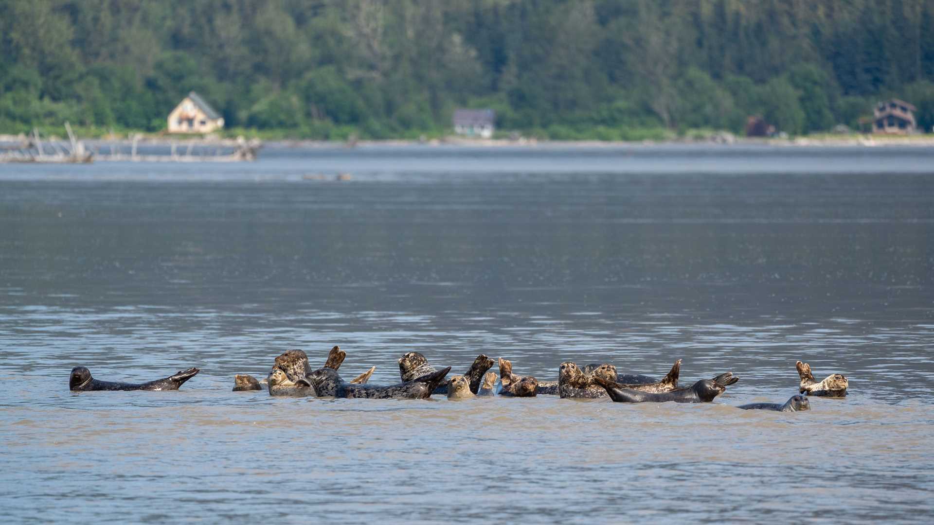 Today we woke up to a gorgeous day aboard National Geographic Sea Lion while sailing to the town of Wrangell. As we docked, we could see this cute town set in the trees with a beautiful blue sky above it. After breakfast, we set out for the dock and were whisked away on jetboats. These metal-hulled crafts have jet engines capable of sailing in just a foot of water. Even though it was low tide, we easily sailed away from Wrangell and up the Stikine River. We stopped at a couple of places, including stops to see 30-40 harbor seals hauled out on a sandbar and a small forest cabin tucked back in the woods. The breathtaking sights were seen from each window because this area is almost indescribable. Upon reaching the base of Castle Mountain, we observed the glacially carved fjords on either side. In front, a vast sea of icebergs was grounded by low tide, making it safe to approach them. This is the closest you can get to icebergs, as there is no chance of them flipping or moving as our jet boats carved through the waters. After about 30 mins of photography and awestruck excitement, we raced back down the river and towards National Geographic Sea Lion.