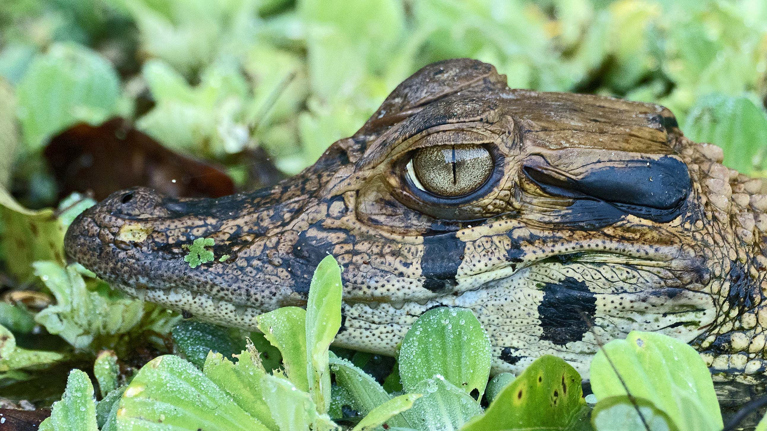 During our afternoon exploration, we put on our rubber boots to explore a non-flooded forest trail known as Casual. This exploration site offered the opportunity to encounter an adult green anaconda. Green anacondas are the heaviest of the species and the second longest. Their bodies our adapted to an aquatic lifestyle, so their eyes and nostrils are on top of their heads and their patterns are camouflaged in the water’s vegetation. We found one of the small reptiles in a small rainwater pond.