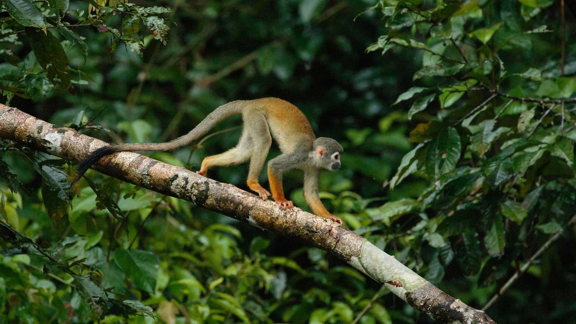 We explored farther to encounter a family of squirrel monkeys jumping among the canopy and being highly vocal. These omnivorous monkeys have around 20-25 different types of calls registered. They live in interesting social structures from small to large numbers of individuals. Squirrel monkeys live up to twenty-five years.