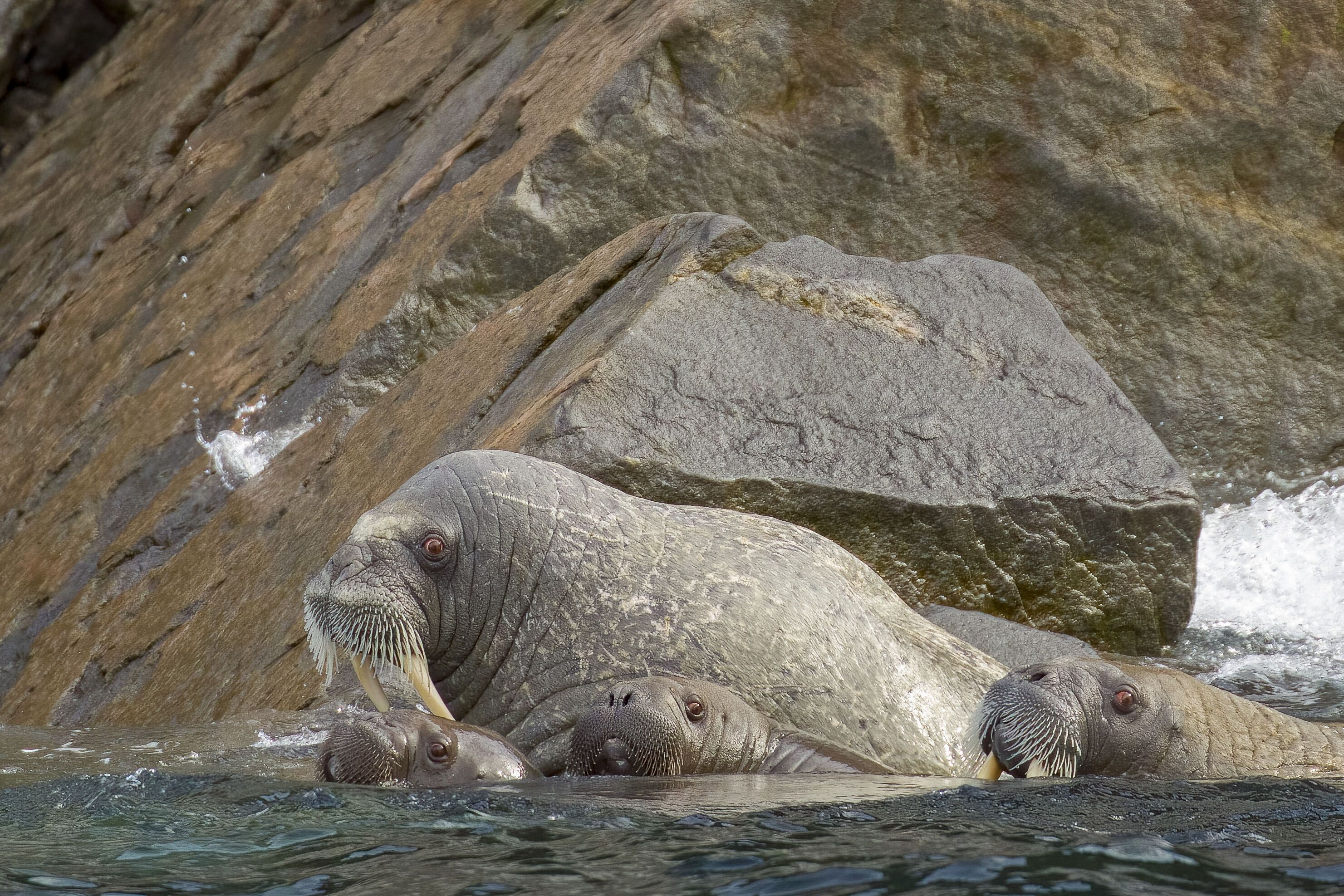 Our day began with much anticipation to hike and get in the water with the kayaks at York Sound, Baffin Island. We arrived in the morning to York Sound. This beautiful fjord is located at the southern tip of Baffin Island and Frobisher Bay. It is home to an attractive camping ground for the local Inuit population that live in Iqaluit, the capital of Nunavut, which is located right at the top of Frobisher Bay. The area is usually not very accessible due to being unprotected from the larger swells from the North Atlantic seas. This place is fantastic for seeing polar bears, caribou, arctic foxes, wolves, and for the locals in the area: a large proportion of arctic char! Without delay, two polar bears were spotted swimming towards National Geographic Explorer before we got anyone in a kayak. This gave us a fantastic experience with a curious young male that swam very close to the ship’s bow for quite some time. The encounter with the bears forced us to move onto our next destination: the Lower Savage Islands! We were greeted with heavy fogs and calmer waters. More polar bears were spotted lining the inlets of the many channels that fill the archipelago. Many seals, including harp and bearded seals, were graciously playing about. The heavy fog provided a dramatic and memorable landscape for the guests. Icebergs popped out of seemingly nowhere as we took Zodiac cruises around the area before heading to our next destination.
