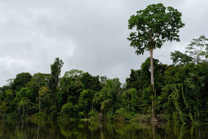 Today we explored the most remote areas of the week’s voyage by skiff. A morning ride through the Zapote River brought us up close and personal with the endemic monk saki monkey. The flooded lagoons off the Pacaya River, with their towering isolated trees, were a departure from the densely vegetated forest we’ve grown accustomed to this week, and were the backdrop for some great bird-watching.