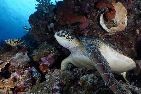 Situated at the center of the Coral Triangle, the waters of Bunaken Marine Park were under threat until a group of local divers started a grassroots movement in the 1990s to formally protect this important sea life habitat. Three decades later, their success can be seen by snorkelers firsthand. Rare and threatened species seek haven in these protected waters, including large numbers of hawksbill and green sea turtles, which come here year after year to lay their eggs on Bunaken’s beaches.