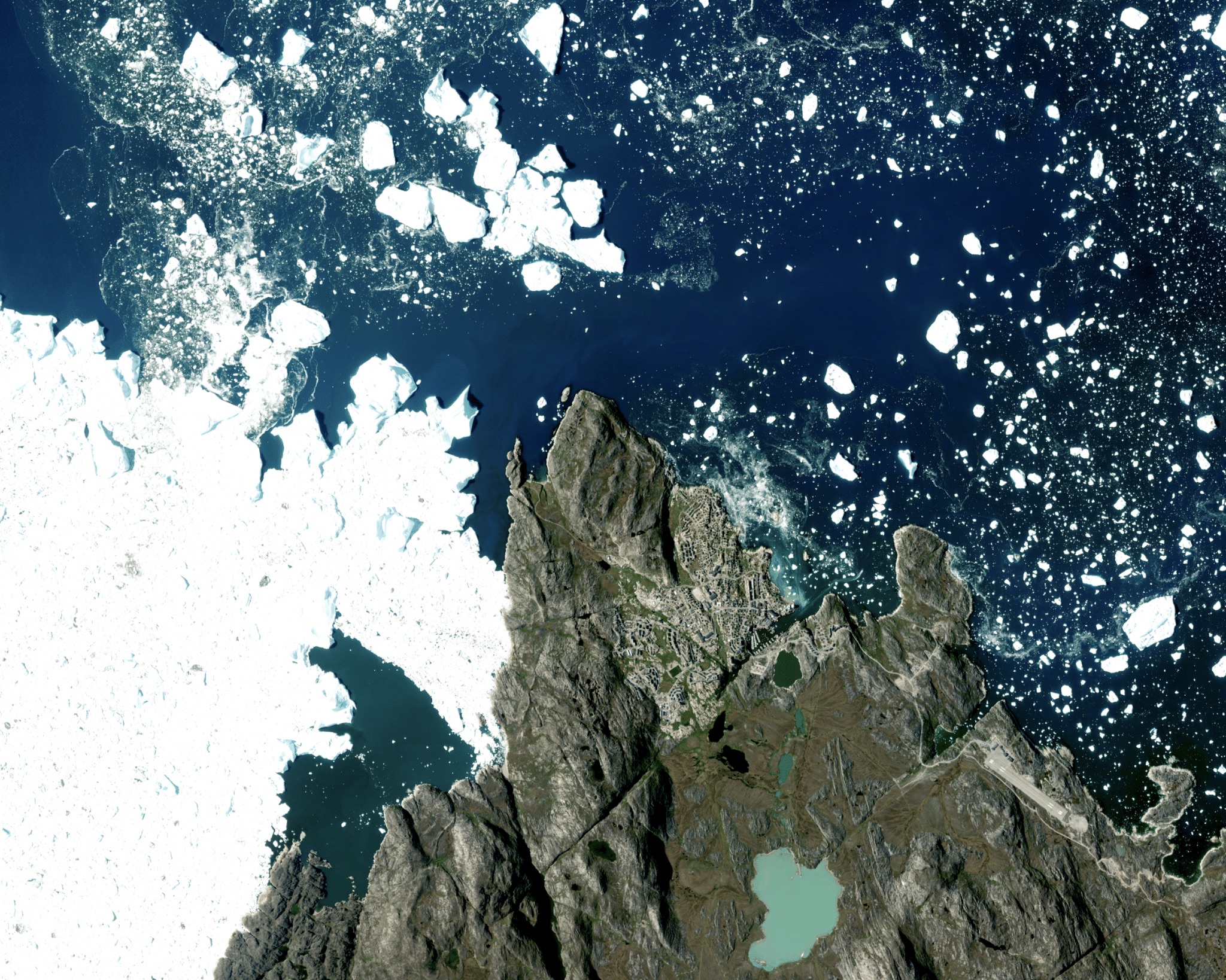 Ilulissat is a small town on the western coast of Greenland. The name of the town fittingly means “icebergs” in Kalaallisut, the local language, and its colorful houses are nestled into a pocket on the rocky coastline, near the mighty Ilulissat Glacier. This massive stretch of ice flows down from the Greenland Ice Sheet, releasing icebergs of up to a kilometer in height into the ocean. Here the veteran @lindbladexp bridge teams weave their nimble, iceships (visible here!) through the bergs, routinely spotting seals and even humpback whales on their approach to the town.
