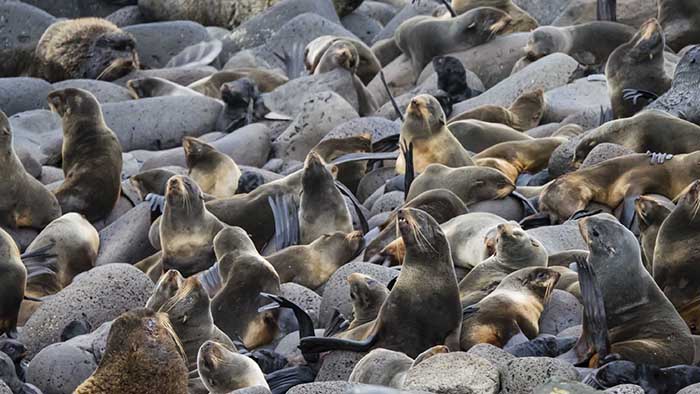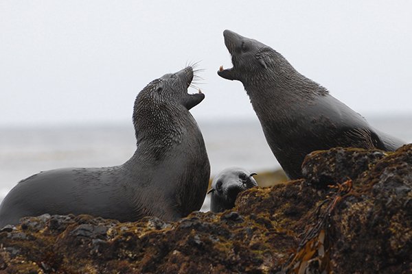 How to Spot Them: Stocky body; small head, very short snout; external earflaps; extremely dense fur; longest flippers in the Oatriidae family—their hind flippers can measure up to 1/4th their total body length; Males can reach 7 feet, 600 pounds, females can reach 5 feet, 120 pounds.